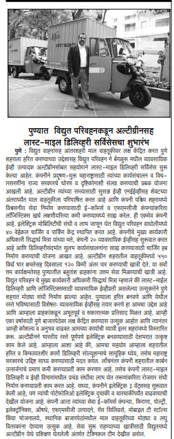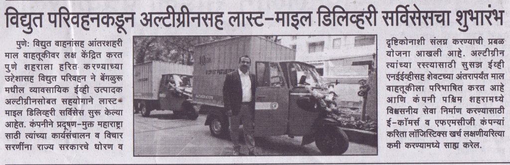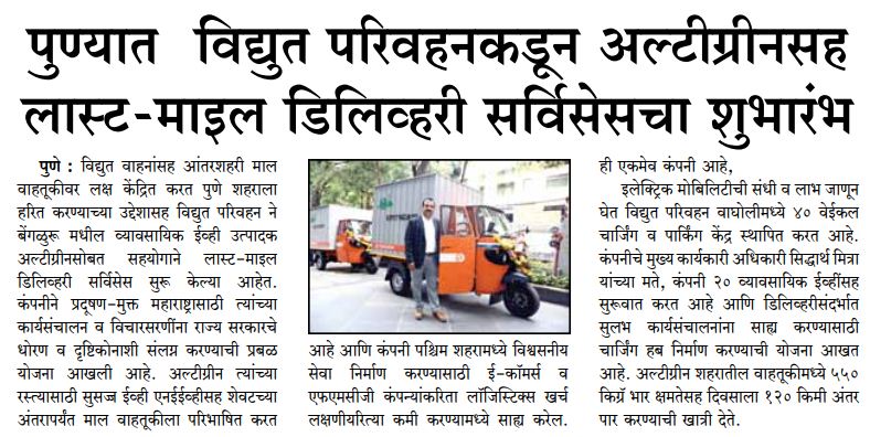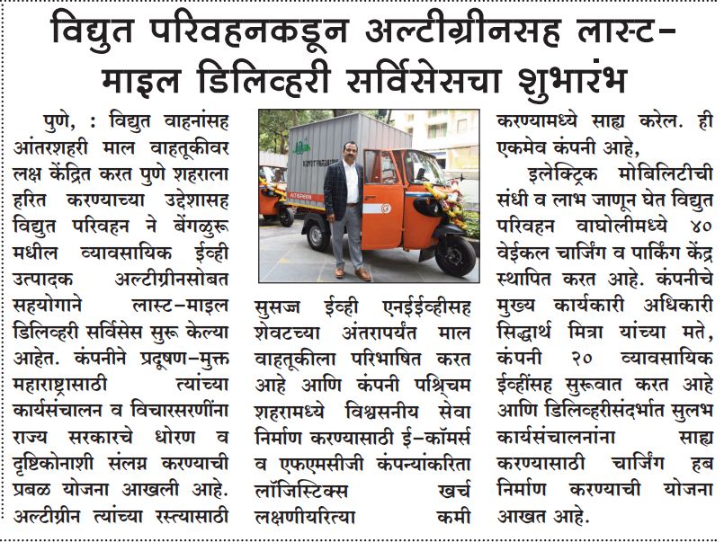 Vidyut Parivahan Introduces Altigreen For The last-mile Green Delivery In Pune.